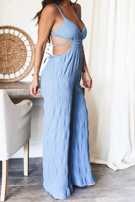 Macacão Feminino Elegante sem Mangas – Alças Finas, Costas Descobertas e Perna Larga
