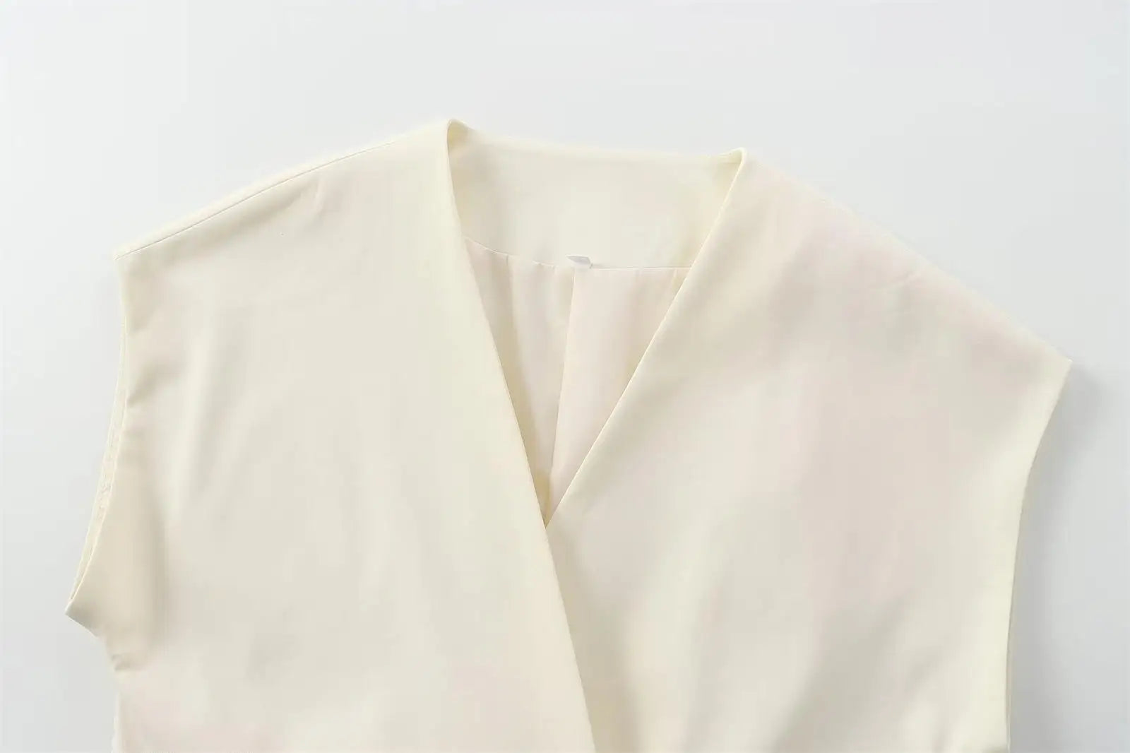 Conjunto Feminino de Calças e Top sem Mangas – Decote em V, Cinto Elegante e Corte Reto